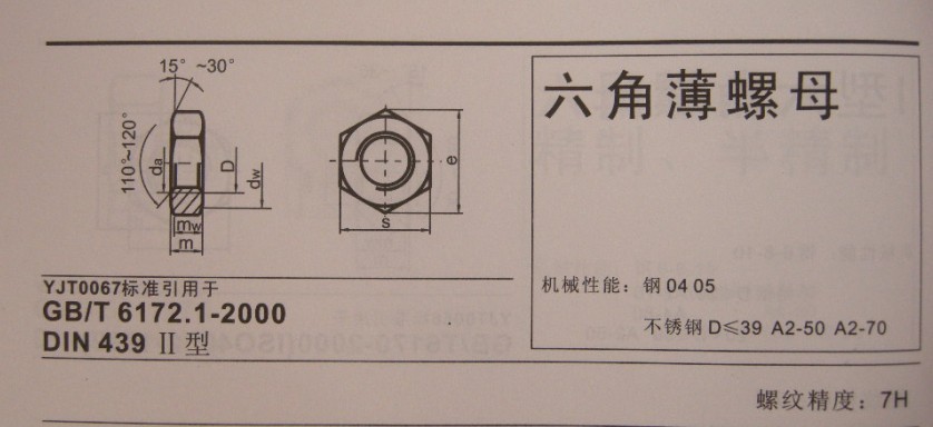 DIN439薄型螺帽、GB6172,304、316不銹鋼材質(zhì)