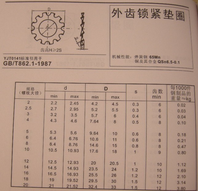 GB862.1外齒墊圈304不銹鋼材質(zhì)