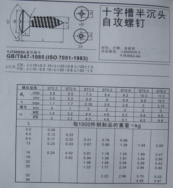 GB847半沉頭自攻304、316不銹鋼材質(zhì)