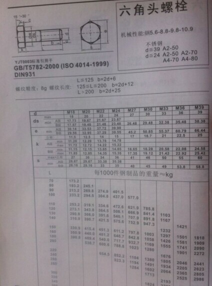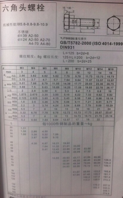 DIN931粗桿半牙外六角螺絲GB5782